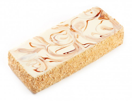 Klasický žlutý piškotový koláč namočený v cukrovém sirupu, kombinovaný s lehkým vanilkovým a mléčným krémem.